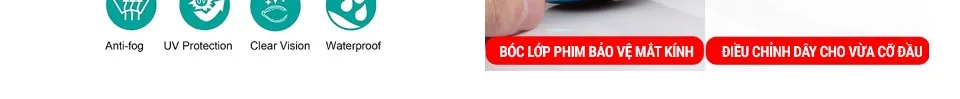 - Đặt 2 mắt kính vào hai bàn tay, ấp vào mắt, các ngón trượt kéo dây chun lên đầu và để đúng vị trí.