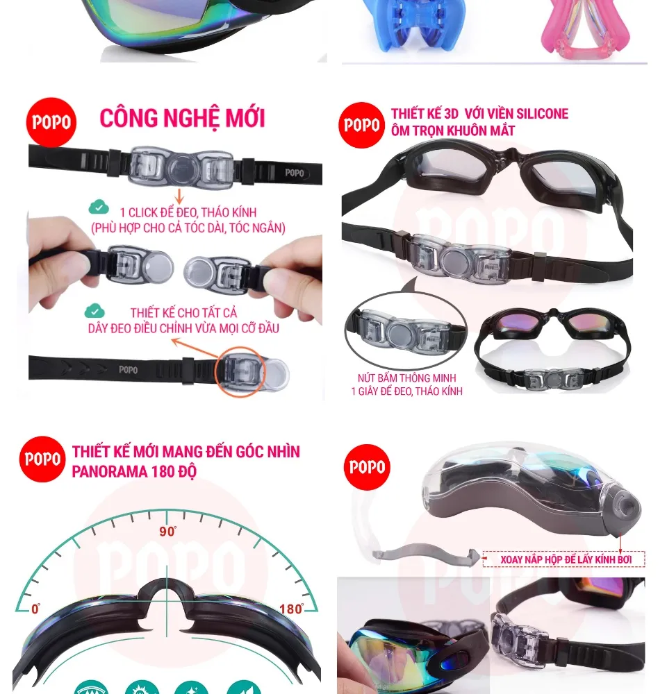 POPO Collection xin giới thiệu sản phẩm Bộ kính bơi mũ bơi bịt tai kẹp mũi POPO Collection 2360 mắt kính tráng gương. Bộ sản phẩm kính bơi chuyên nghiệp 2360 đảm bảo 100% chất lượng được kiểm soát chất lượng chặt chẽ theo tiêu chuẩn châu Âu với chứng nhận CE.