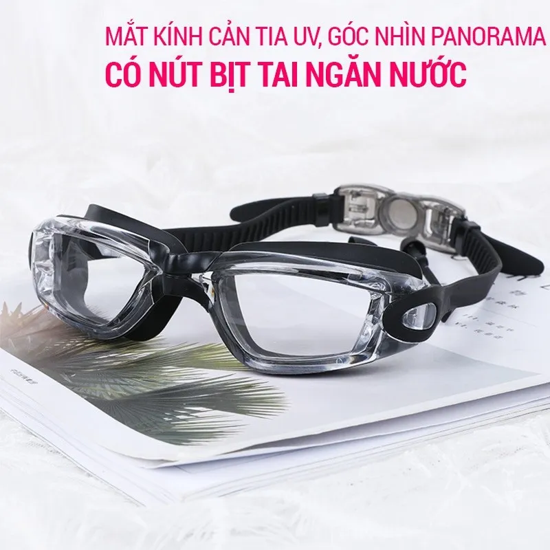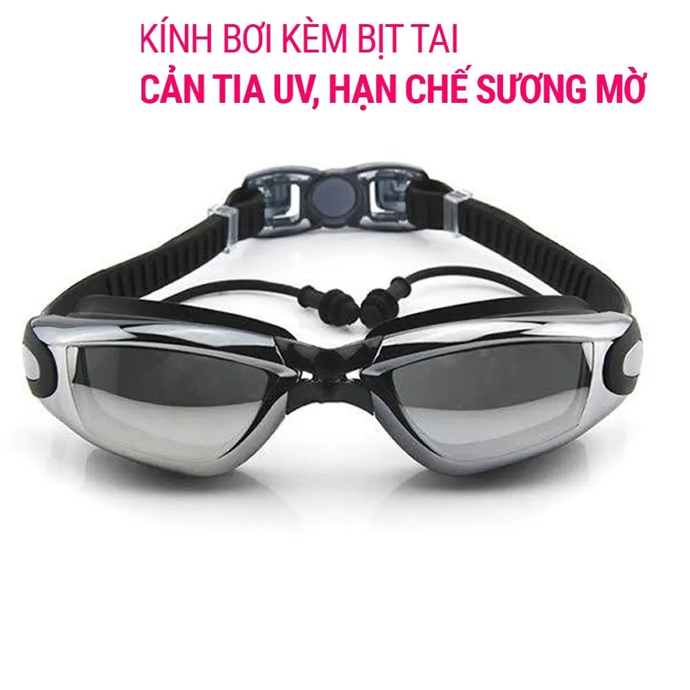 Kính bơi người lớn tráng gương kèm bịt tai cho nam nữ
